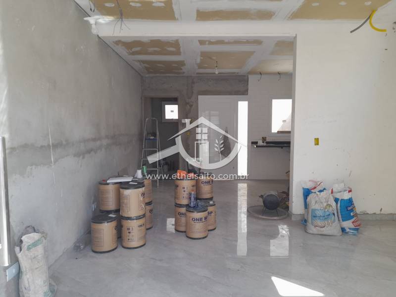 * Casa/sobrado, estilo quadrado, 3 dormitórios, inclusive 1 suíte com sacada, cozinha integrada com a sala de 2 ambientes, varanda, garagem para 2 vagas cobertas, portão eletrônica, corredor lateral e fundo pequeno quintal.