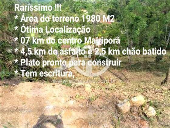 Terreno 1.980 m Pronto pra construir- acesso da cidade-3km asfalto-2km terra batido- Mairiporã- SP. Localização privilegiada, alto,pronto pra construir, sua área de 1.980m², aproveitamento 100%, pequeno declive, rodeada de chácaras. * Documentação: com matrícula e IPTU individual. * Localização: Jd Coimbra * Topografia: Pequeno declive, tem platô pronta p/ construção de 400m2. * Na parte inferior do terreno tem espaço para construção de uma casa, pequeno pomar e área de lazer. * Tem luz na rua e para água temos duas opções : necessário fazer poço ou pegar água da mina próxima ao loteamento. * Valorização prevista, até por melhoramento do acesso e tem previsão de asfaltamento. * Ônibus escolar da prefeitura. A vista não aceita parcelamento
